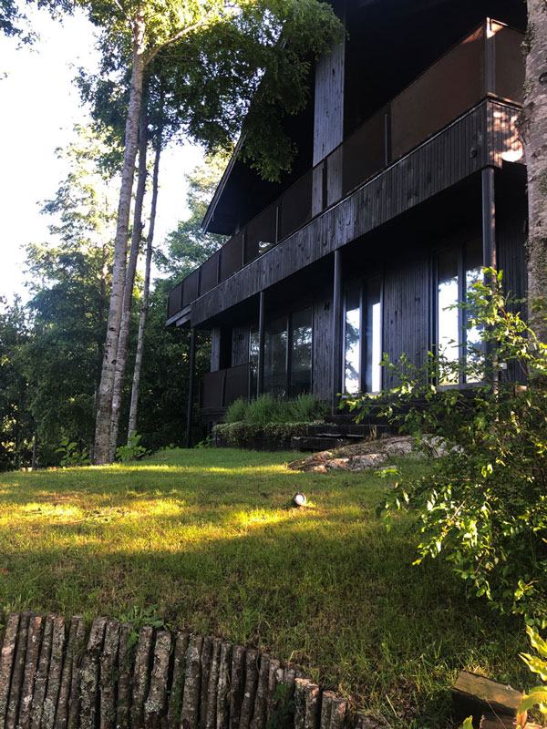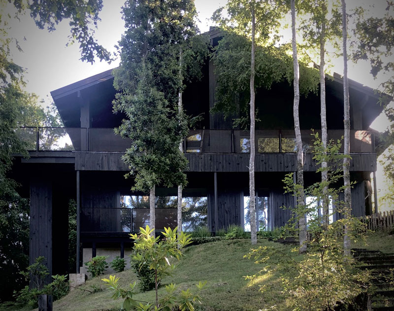 Revestimientos exterior en Madera 1”x 5”, con cantería vertical recta intermedia.